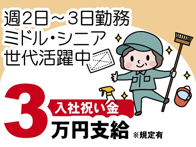 宮ビルサービス株式会社チーム拡大のため3名採用/月収例33万円/経験者・未経験者共に歓迎・30~50代活躍中!定期清掃