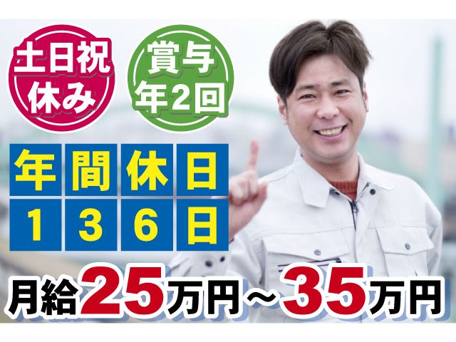 株式会社アクト電機月給25万~35万円/土日祝休み/年間休日136日/賞与60万~110万円支給実績あり/残業少なめ