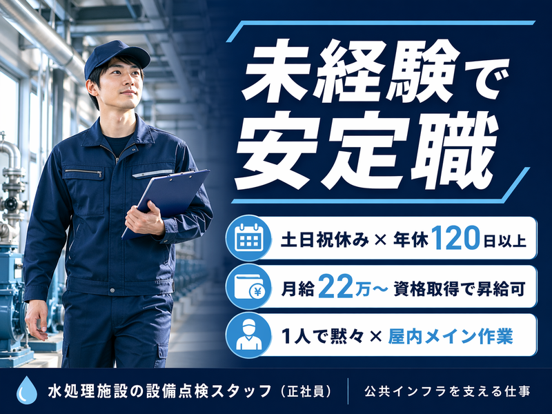 【未経験・無資格OK】安定のインフラ業界で正社員!賞与年2回/土日祝休み/資格取得支援あり《保全・運転管理スタッフ》