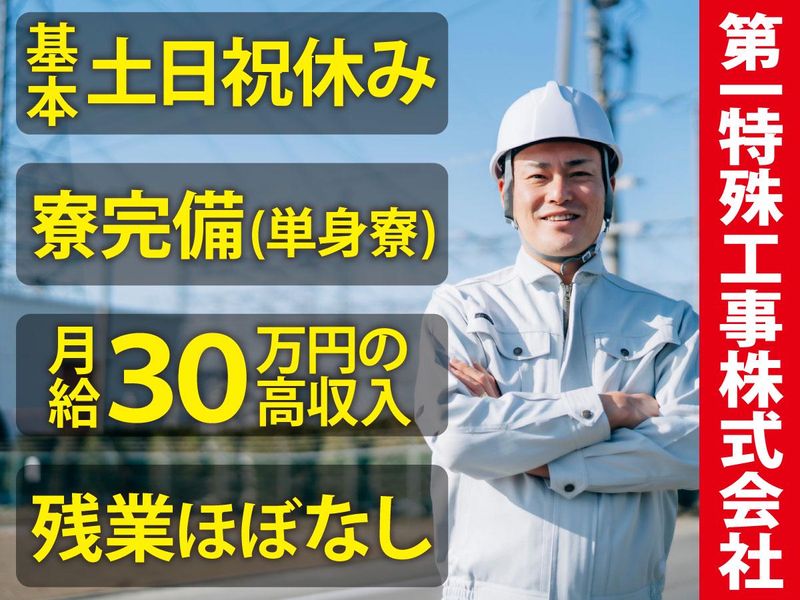 第一特殊工事株式会社有資格歓迎|月給30万円~|残業ほぼなし|寮完備|賞与あり