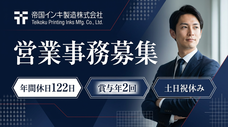 帝国インキ製造株式会社【事務経験者を募集】土日祝休み/年間休日122日/賞与年2回