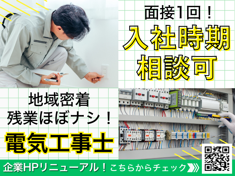 赤尾電設株式会社若手でもキャリアアップ可能⭐資格手当充実⭐ミニ個別相談会実施中⭐面接1回