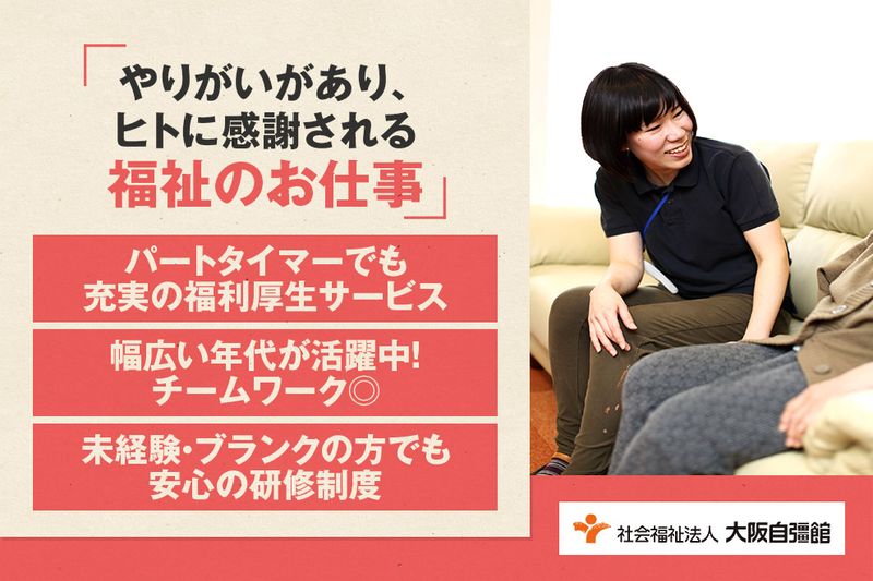 社会福祉法人 大阪自彊館地域の方々を笑顔で楽しく支えましょう!救護施設の通所ケアスタッフ