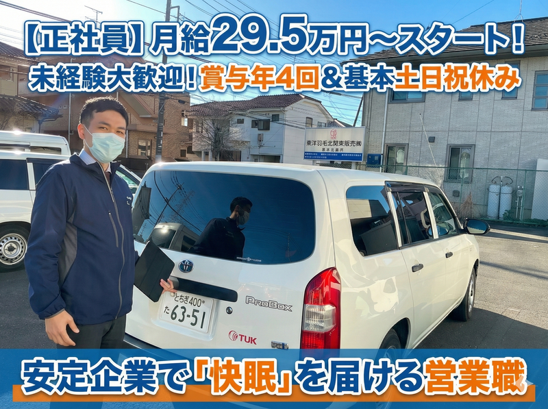 東洋羽毛北関東販売株式会社営業未経験でも月給29.5万円~✅賞与年4回✅基本土日祝休み