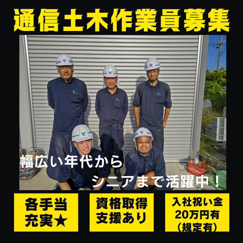 通信土木の作業スタッフ✨寮完備✨オンライン面接可能✨