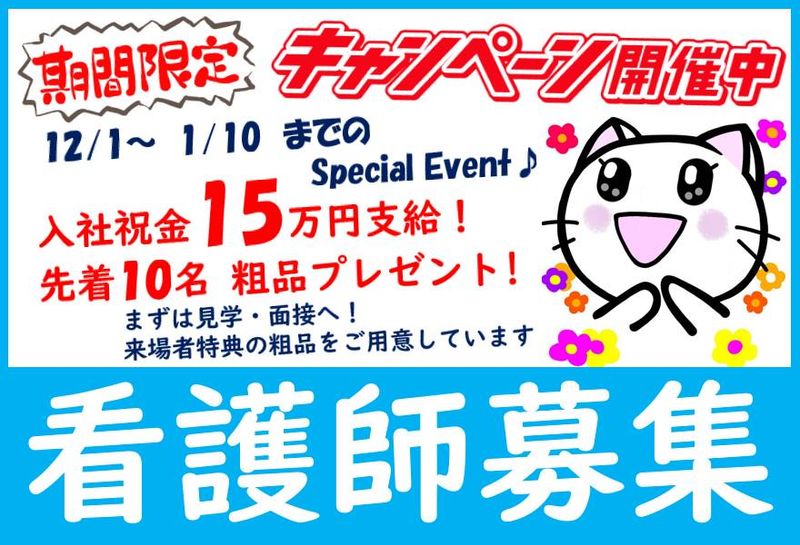 求めている人材 【必須条件】 ◎正看護師免許 ※准看護師の方もご相談く...