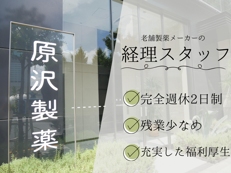 原沢製薬工業株式会社【経理・労務の経験3年以上】◆土日祝休◆年休120日◆残業少