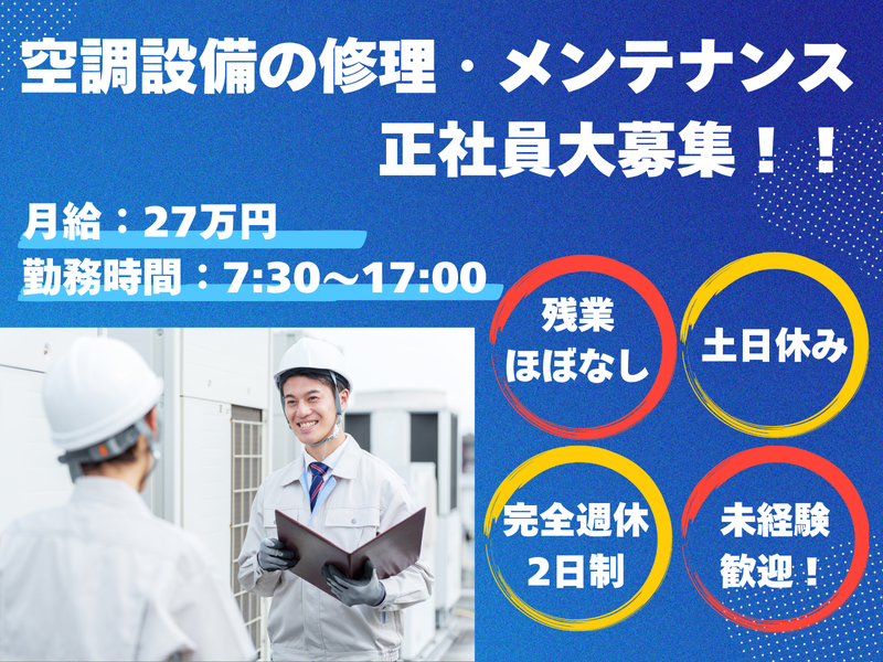 株式会社クールテック月給27万円~*完全週休2日*残業ほぼなし!17時退社
