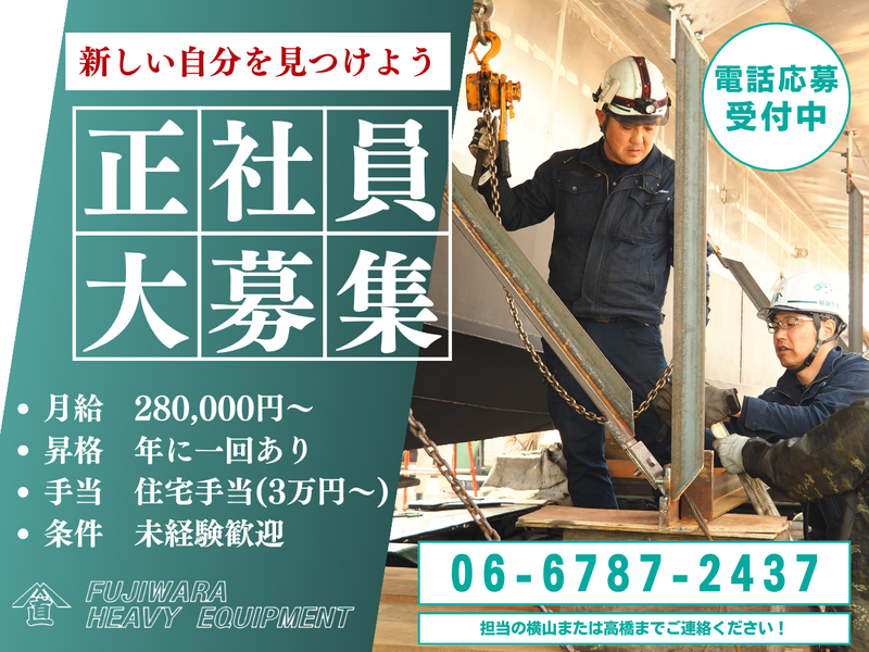 株式会社藤原重機引越し・工場・建設経験が活きる仕事/住宅手当(3万円〜)あり