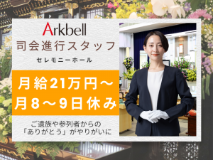 株式会社アークベル未経験から無理なくスタート◎30~40代女性活躍中!月8~9日休みで家庭と両立できるセレモニーアテ...
