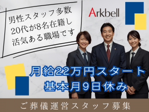 株式会社アークベル冠婚葬祭のアークベルグループでのお仕事です。20代~50代のメンバー活躍中! ☆賞与あり年2回☆...