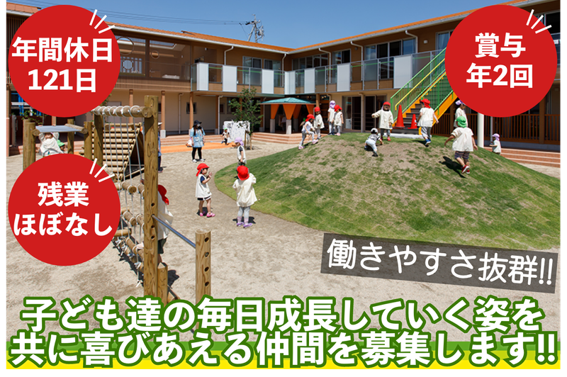 社会福祉法人 夢工房【子ども達のため保育士さんの環境も整えました】年間休日120日以上/残業ナシ/住宅手当など待遇も充...