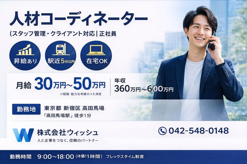 株式会社ウィッシュ人材コーディネーター|スタッフ管理 × クライアント対応