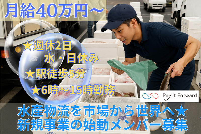 株式会社Pay it Forward新規事業立ち上げ★6時~15時勤務で午後自由♪月給40万円~