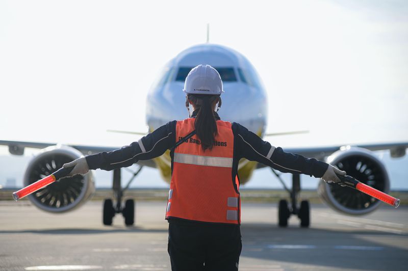 那覇空港でのグランドハンドリングスタッフ