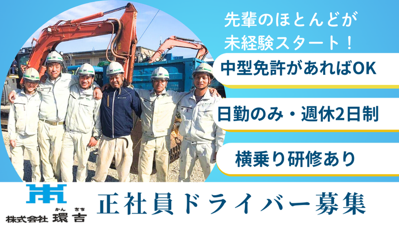 株式会社環吉⭐中型免許あればOK⭐日勤×週休2日制⭐月収34万円可⭐