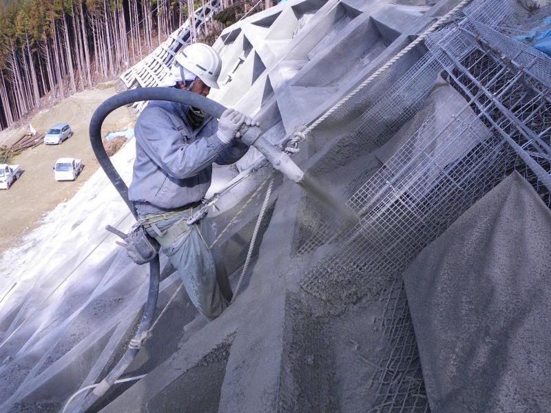 法面⼯事の現場作業員