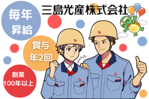 三島光産株式会社《髪色・髪型自由》3食付独身寮月5,000円~◆社宅制度&家賃補助年間50万円!いつでも安心して働...
