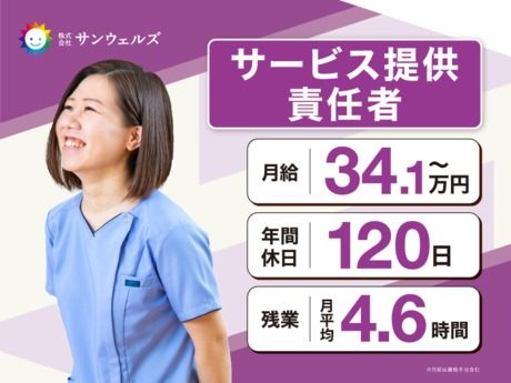 株式会社サンウェルズ上場企業で安定雇用☆年間休日120日!1施設当たりの人員増加で従業員の余暇の充実を図ってます◎